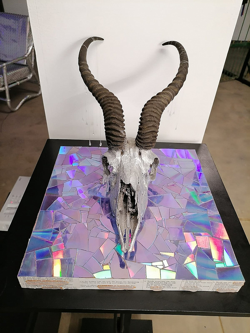 My 2021 body of work is created with traditional and non-traditional mediums and consists out of two-dimensional and three-dimensional artworks. The non-traditional medium used mostly in my experimentations is CD’s. CD’s in police jargon stands for Controlled Dangerous Substances and fits like a shoe, in regards to my project. I have 7 two-dimensional artworks, 7 three-dimensional artworks and one digital artwork that forms part of my body of work.