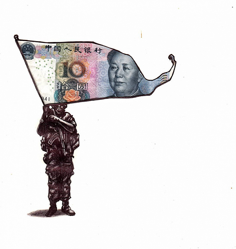 , Stephen Rosin , Ballpoint pen and Chinese currency on paper