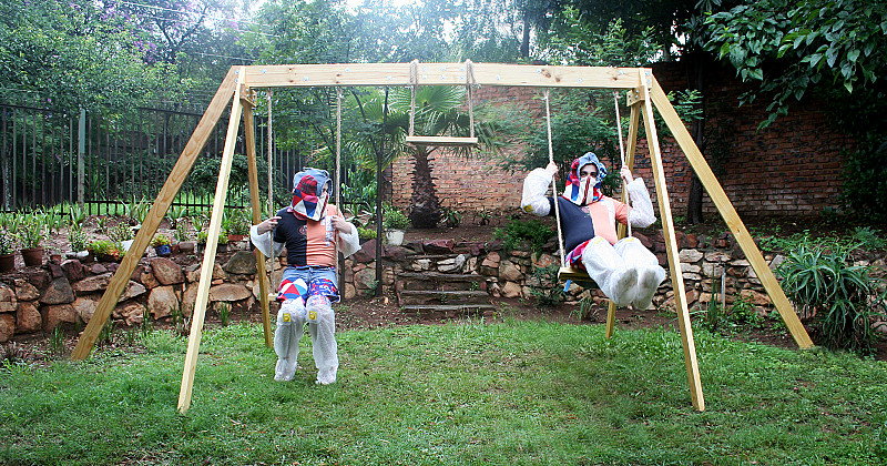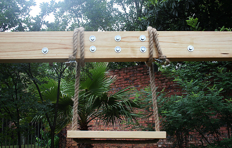 Hanging in There is a full-scale swing designed to allow three to swing at a time; however, due to COVID-19 restrictions, the middle seat has been blocked off to allow for safe social distancing between users. Sorry for the inconvenience