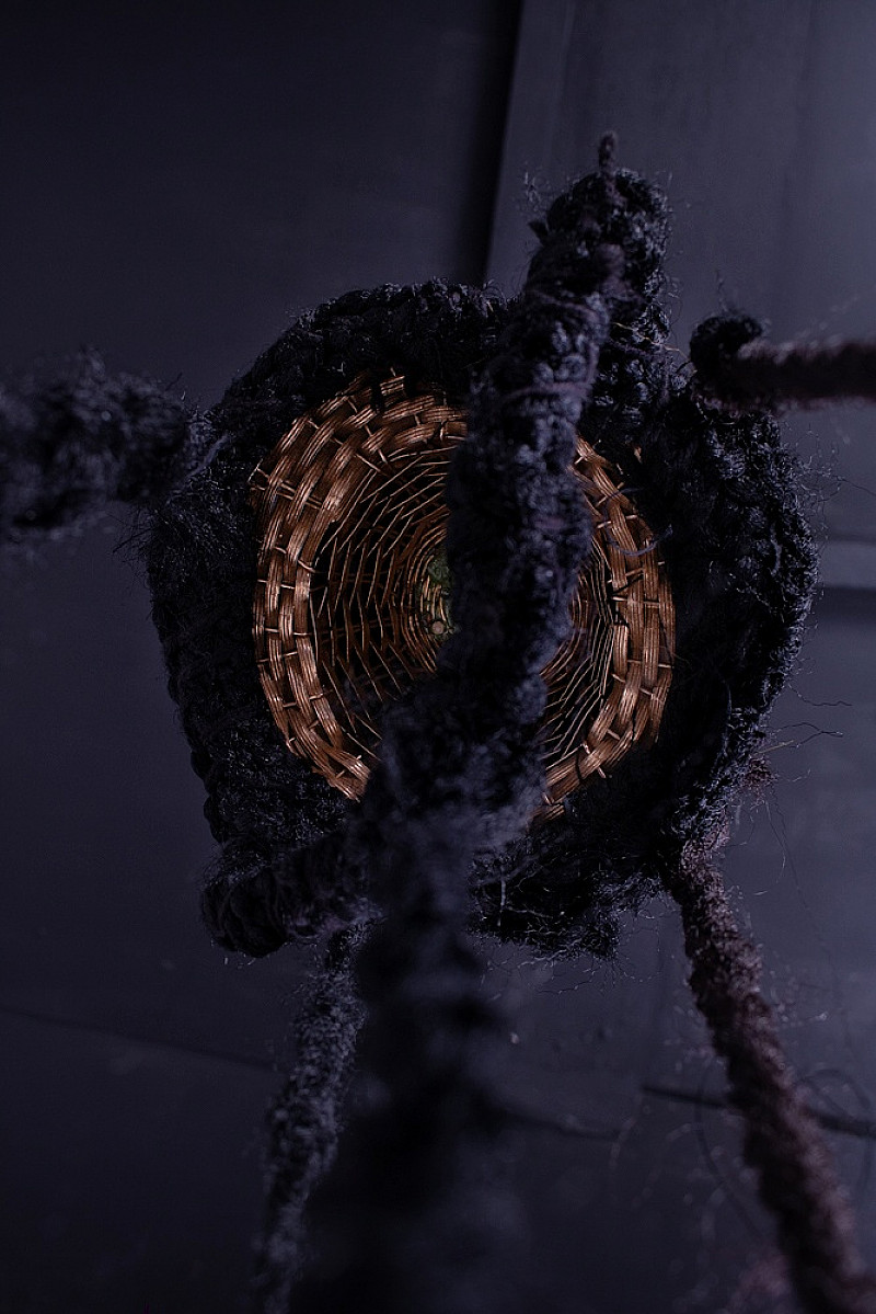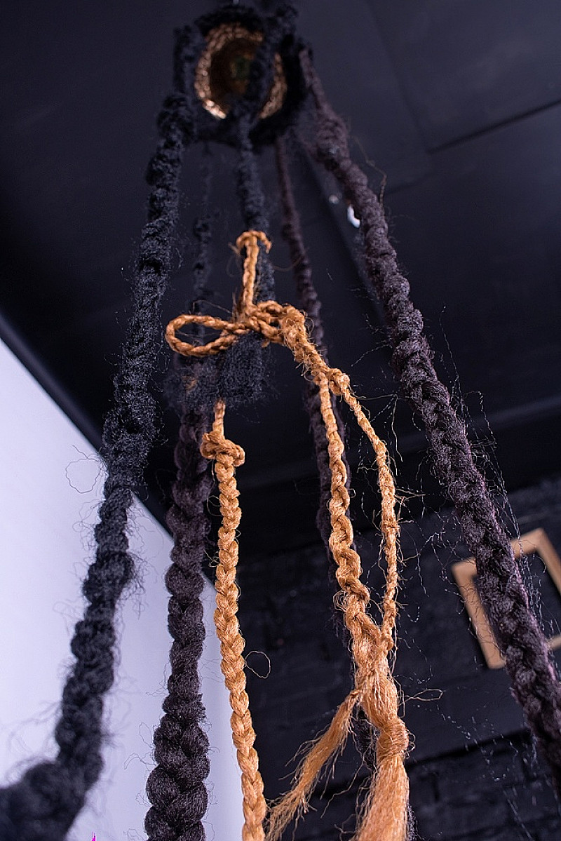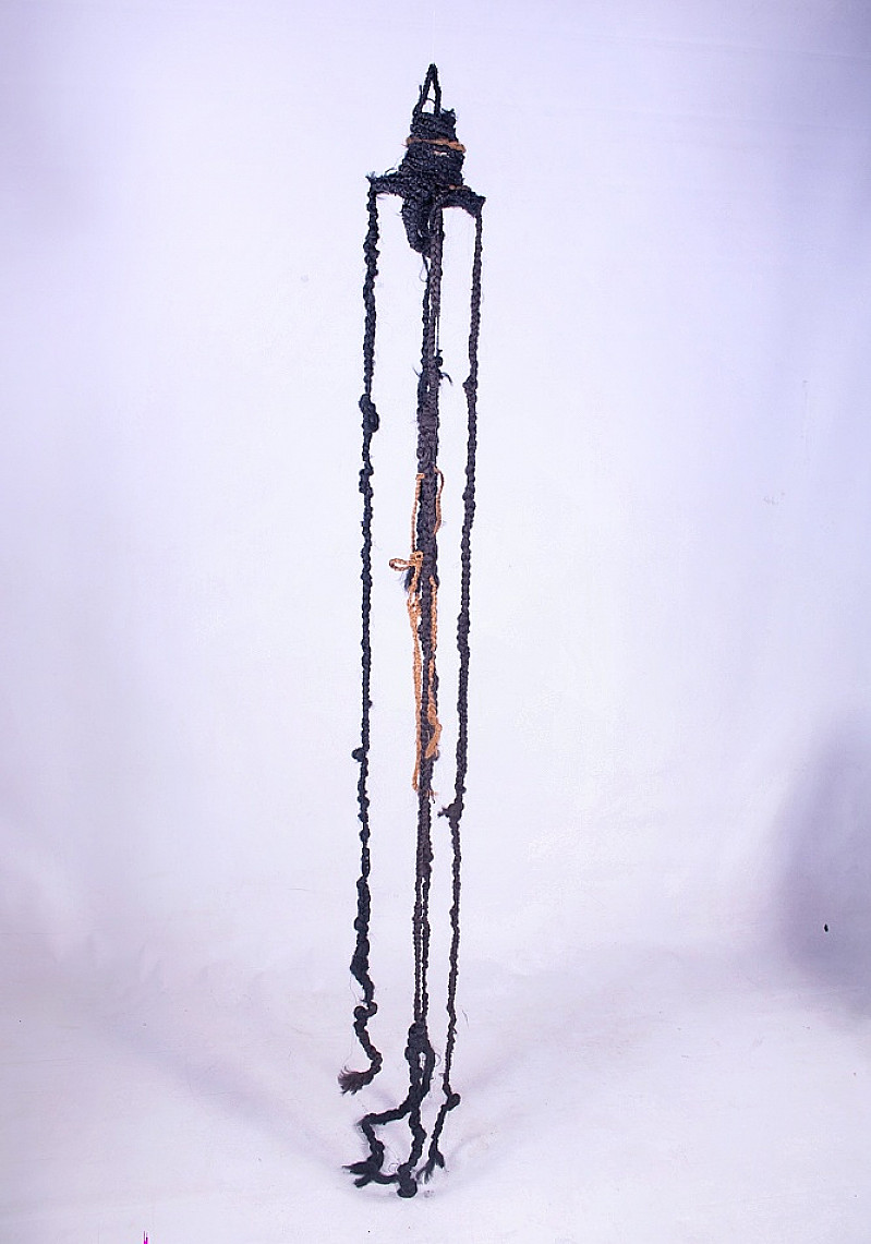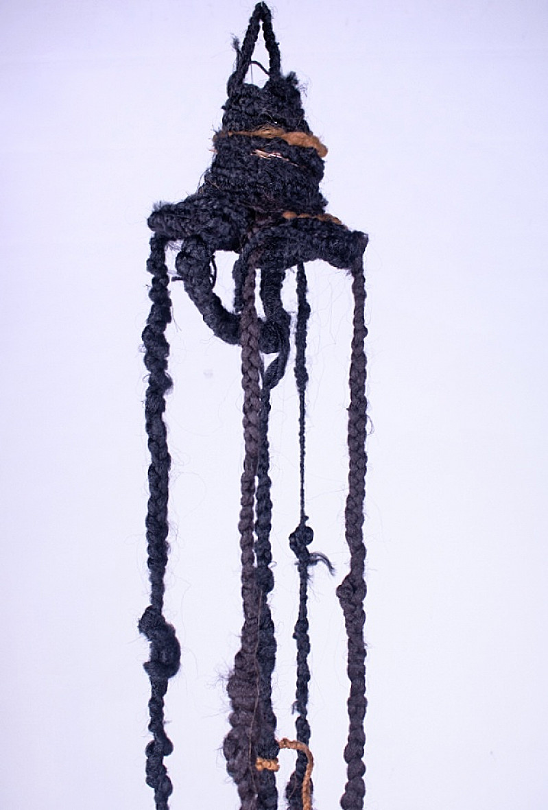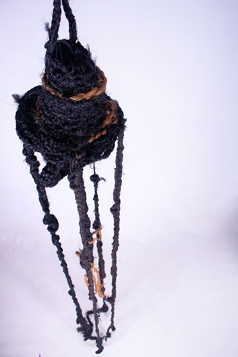 Created with synthetic hair and cane material, this sculpture is a hat reworked as a representation of the importance of hair in my community.