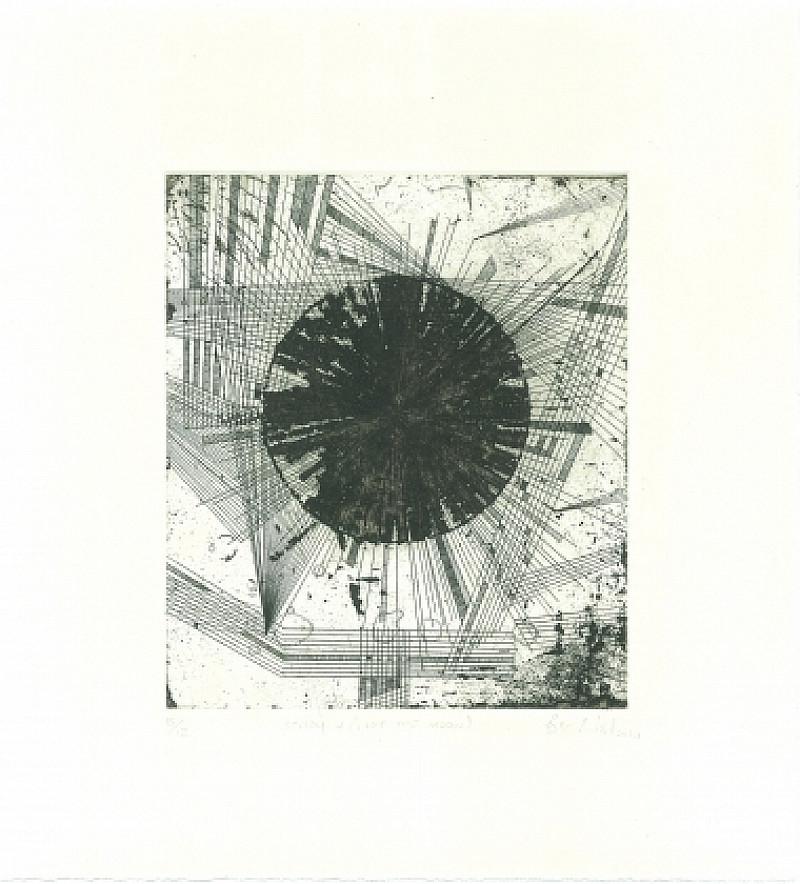 Forming part of the Vestige (2014) series, we see that De Wet explores the use of line and fragmentation is this work. The artist starts moving towards a more abstract composition, leaving behind the figurative explorations he has been engaging with up to this point. He decides to incorporate the black circle, a strong but successful choice, highly symbolic and representational, a strong presence indeed. This compositional component will be an apparent shape within some of his future works.