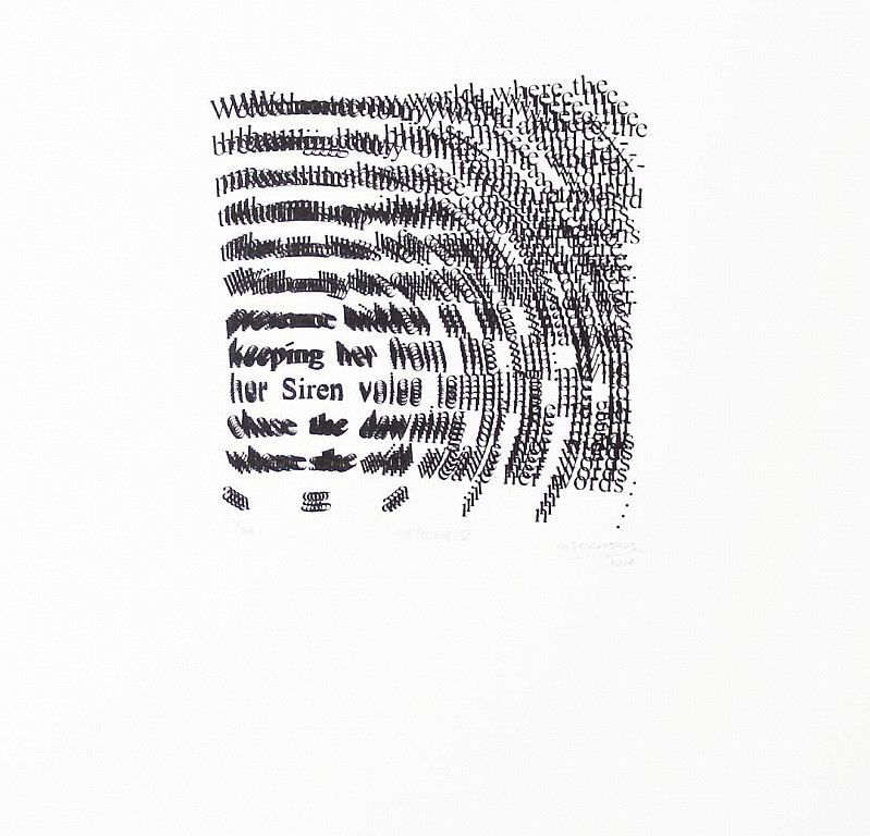 This work deals with some of the more sorrowful ideas around love, in the series of works there is one word that is more readable than the rest of the text and deals with the idea of pain and sorrow. These works deal more with what was happening in my personal life and the breaking down of my relationship with my ex-wife, I guess you could say it was starting to prepare me for the eventual divorce. - Stephan Erasmus
