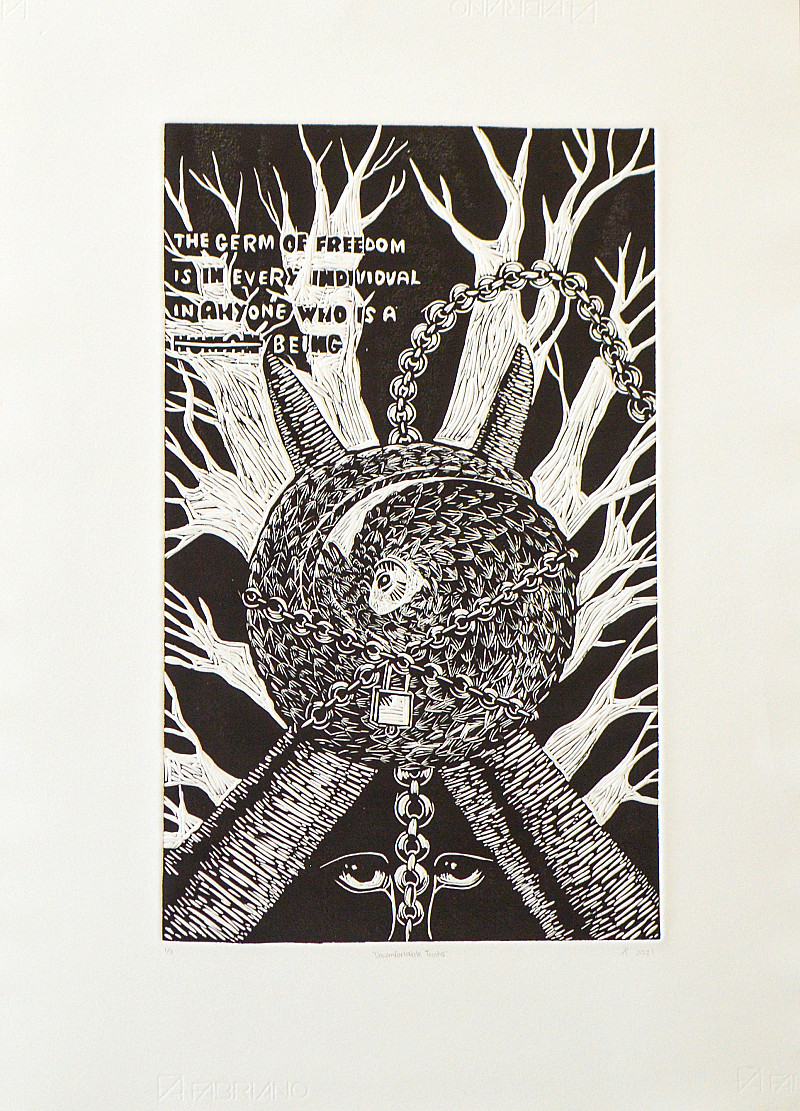 The United Nations Sustainable Development Goal 15: Life on Land, seemingly aims to "take urgent action to end poaching and trafficking of protected species of flora and fauna and address both demand and supply of illegal wildlife products". I dispute this claim, as the UN does not appear to be taking any action towards ending this lucrative trade. The pangolin, (which has sadly earned the title as the worlds most trafficked mammal) is depicted in chains. This reinforces the feeling of entrapment that will be experienced by the beautiful creatures caught in this cruel trade.